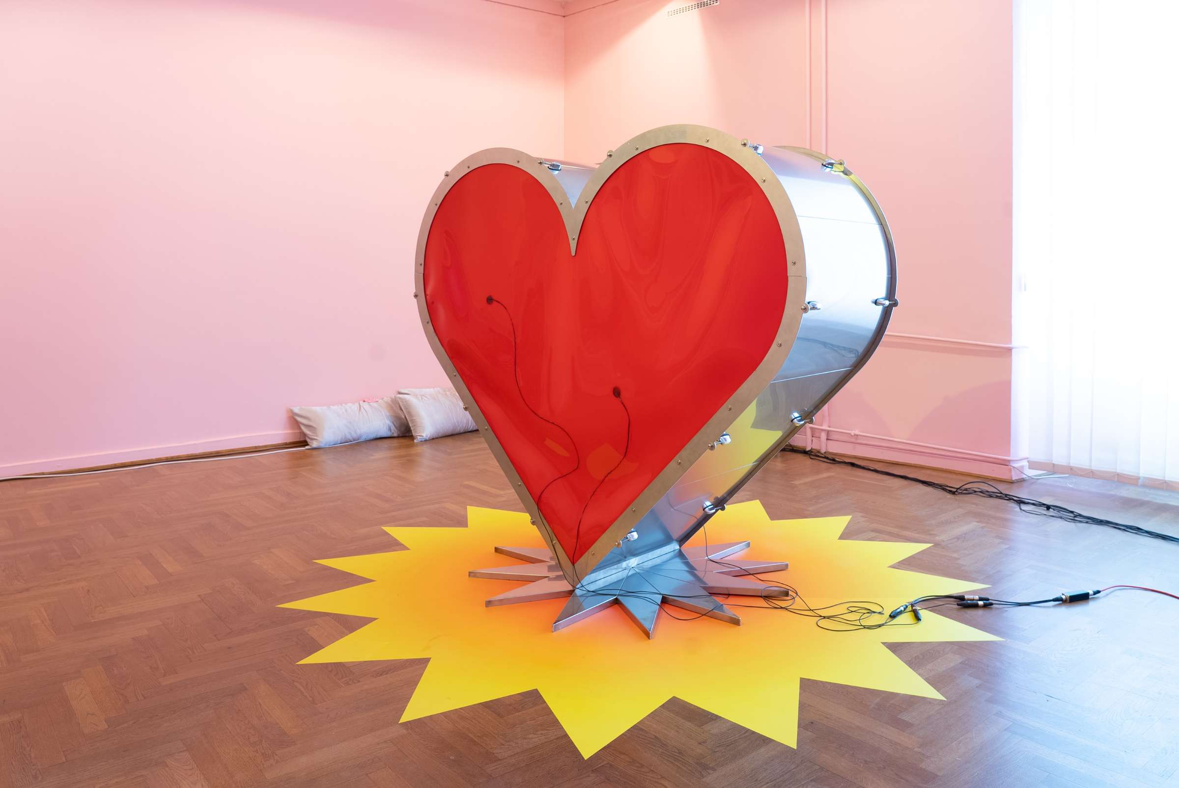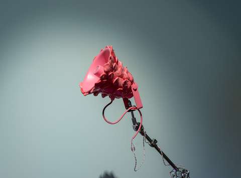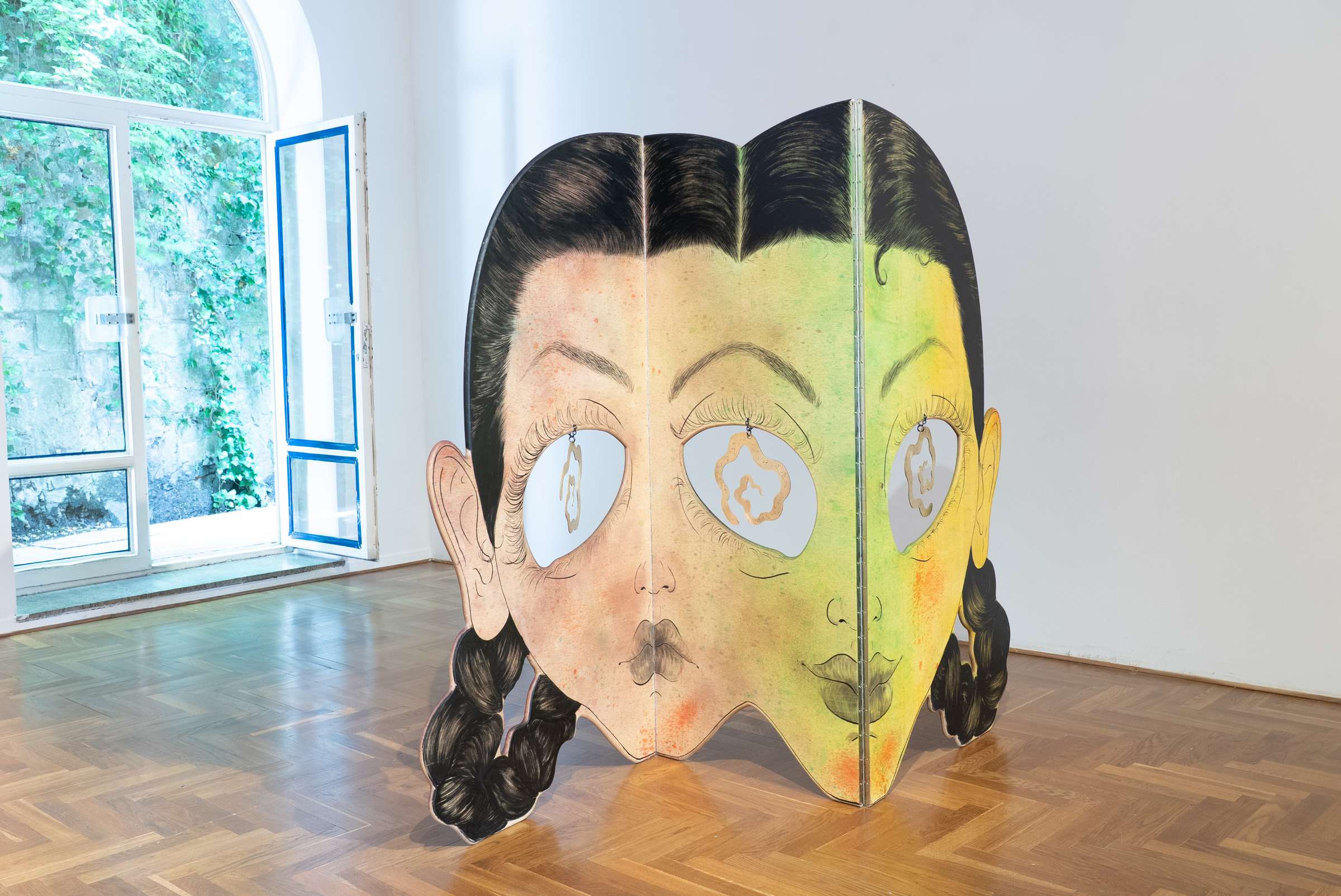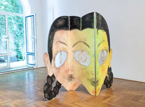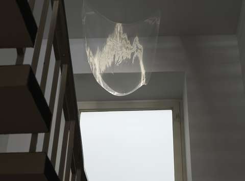 Last night, vandals destroyed an artwork by Katharina Cibulka, one of the artists currently presented in an exhibition at the City Art Gallery Ljubljana, which was installed on the façade of the Cukrarna Palace. The event dismayed and saddened both us and the artist. We are afraid that the action testifies to a great degree of intolerance in our society, leaves a bitter aftertaste in relation to the new development projects in the capital and shows a hostile attitude to socially critical art.