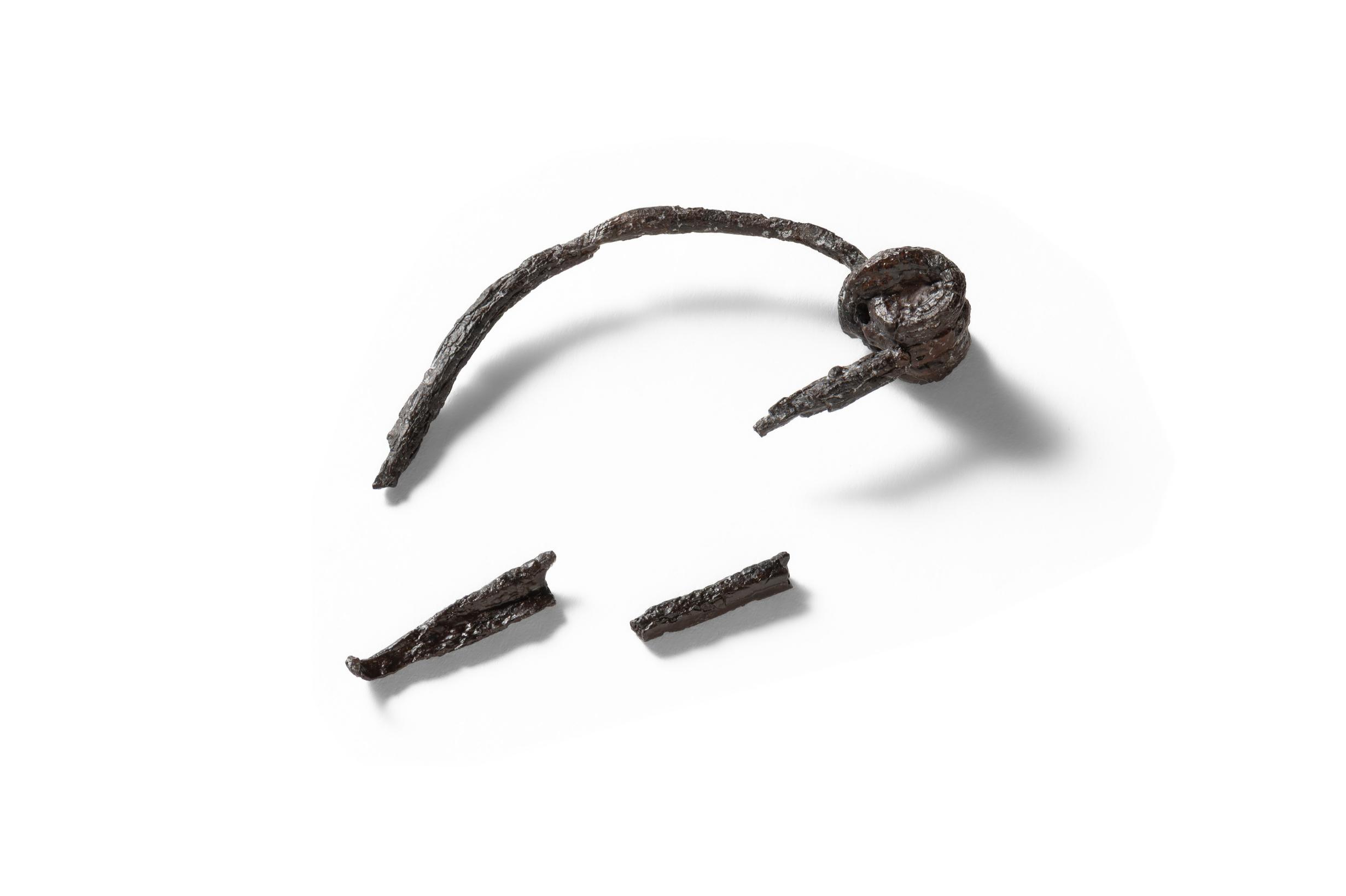 A group of 61 silver coins was found in the grave: 9 large and 51 small Celtic silver coins, as well as a denarius of Emperor Augustus. The position and number of the coins, along with traces of fabric on some, suggest that they were stored in a pouch, which the deceased had attached or tied around his waist. The iron brooch indicates that the man was probably of middle or lower social status, as it was not made of a more precious alloy, and that at the time of his death he was dressed in a thicker cloak or mantle.