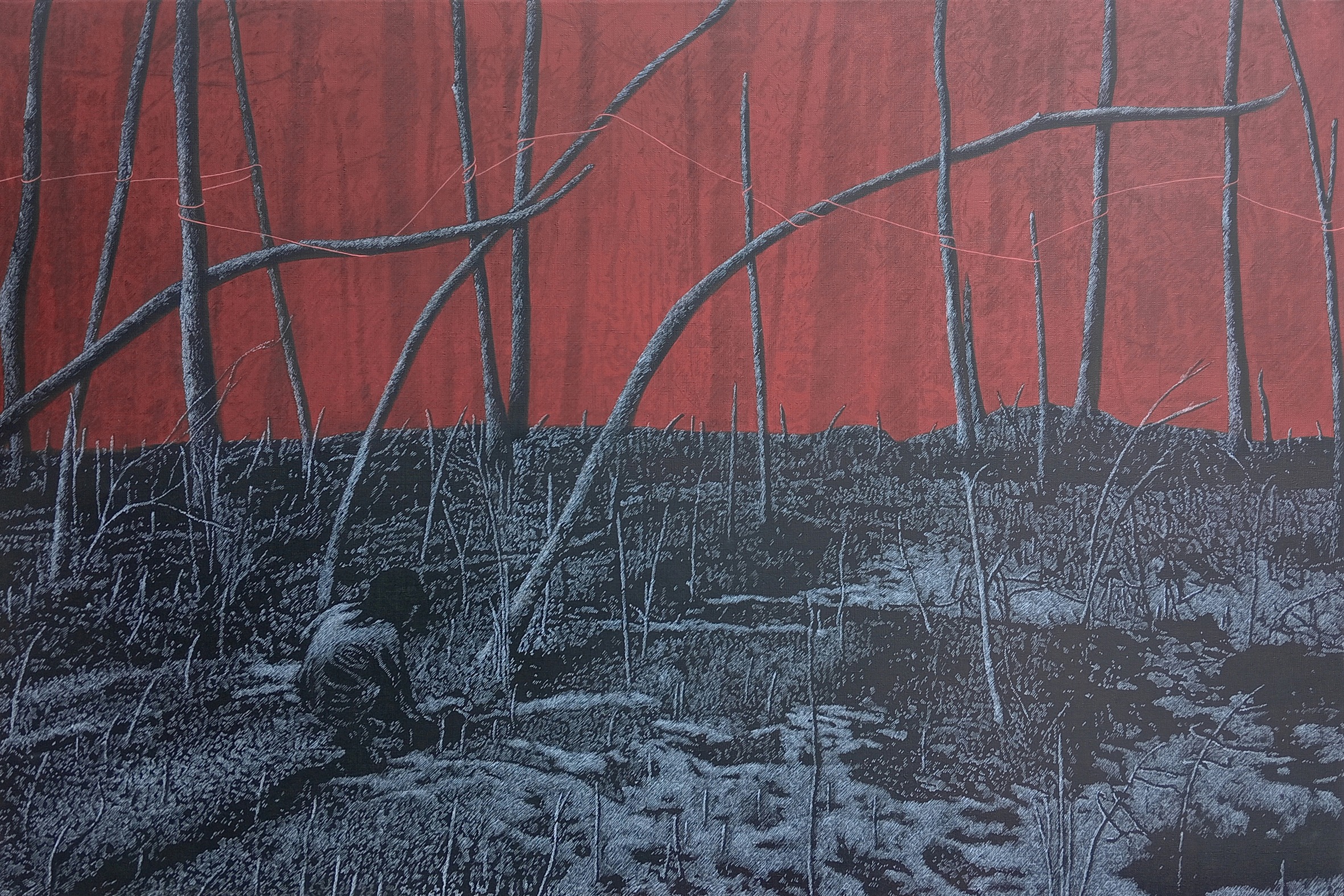 Umetnica ustvarja slikarske podobe, ki prikazujejo svet narave v času mirovanja. S premišljeno in natančno izvedbo – postopnim plastenjem črt in ritmično ponavljajočimi svetlobnimi linijami – predstavlja krajino odmrlih rastišč z videzom prepletene mrežne konstrukcije.