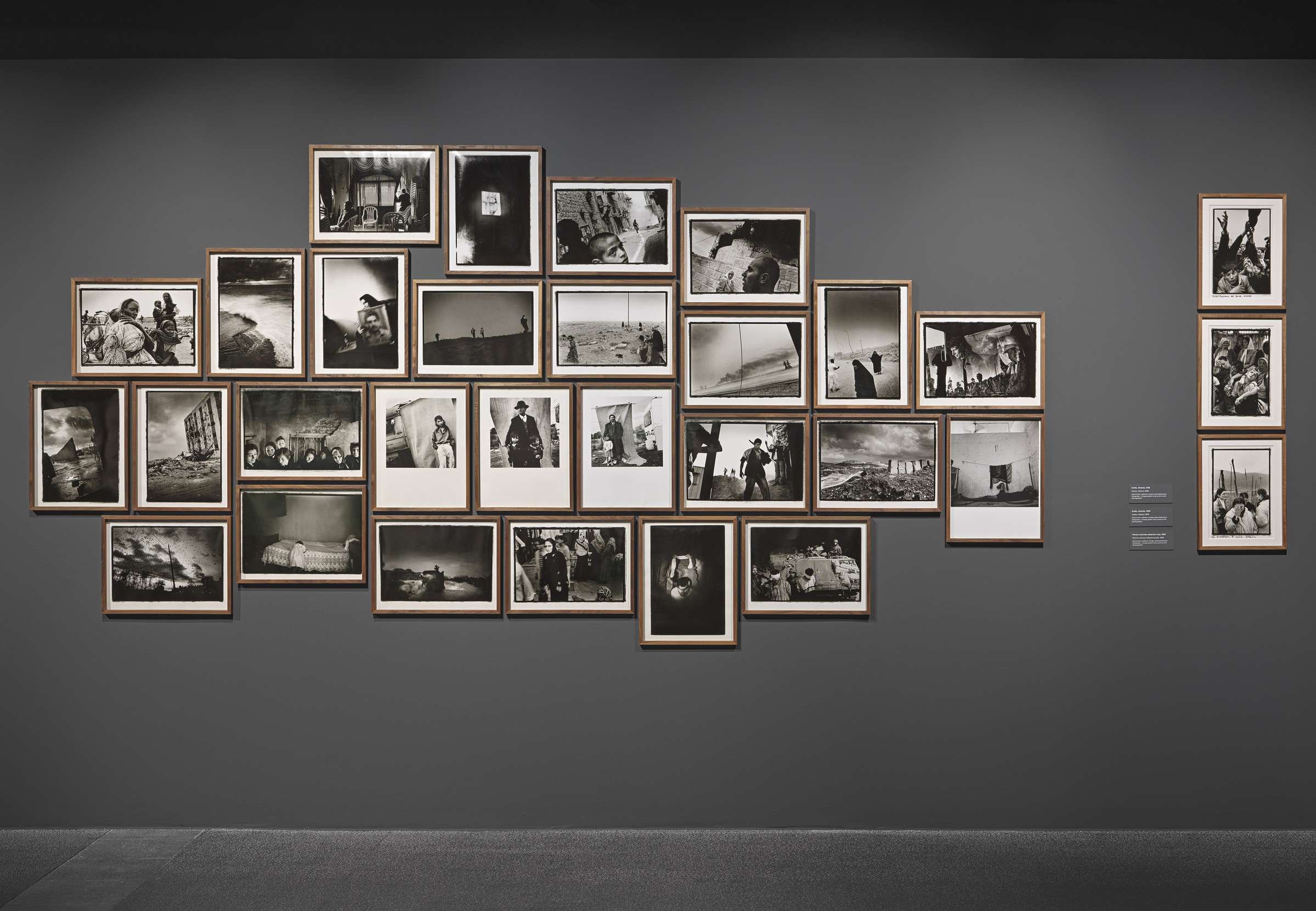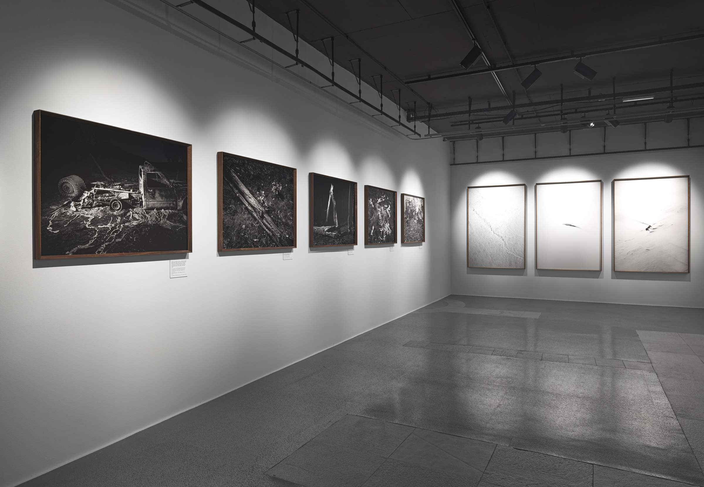 Antologija ni klasičen retrospektivni pregled, temveč skrbno zasnovan vizualni dialog med fotografskimi cikli in podobami, ki presegajo meje kontinentov in desetletij. Razstava se začenja s tremi skoraj popolnoma črnimi interierji iz Gaze, v katere svetloba vstopa le skozi strelne line in ki so kot fragmentirani zapisi travme in preživetja, v zadnjem prostoru pa se zaključi s prizori skoraj popolne beline z Antarktike, kjer posamezne razpoke v ledeni površini razkrivajo slutnjo nestabilnosti pod navidezno neokrnjenostjo narave. Med tema dvema poloma, temo in svetlobo, črnino in belino, se razpira vsa kompleksnost človeškosti, kot jo je ujel Pellegrinov objektiv, občutljiv za vsak vmesni odtenek.