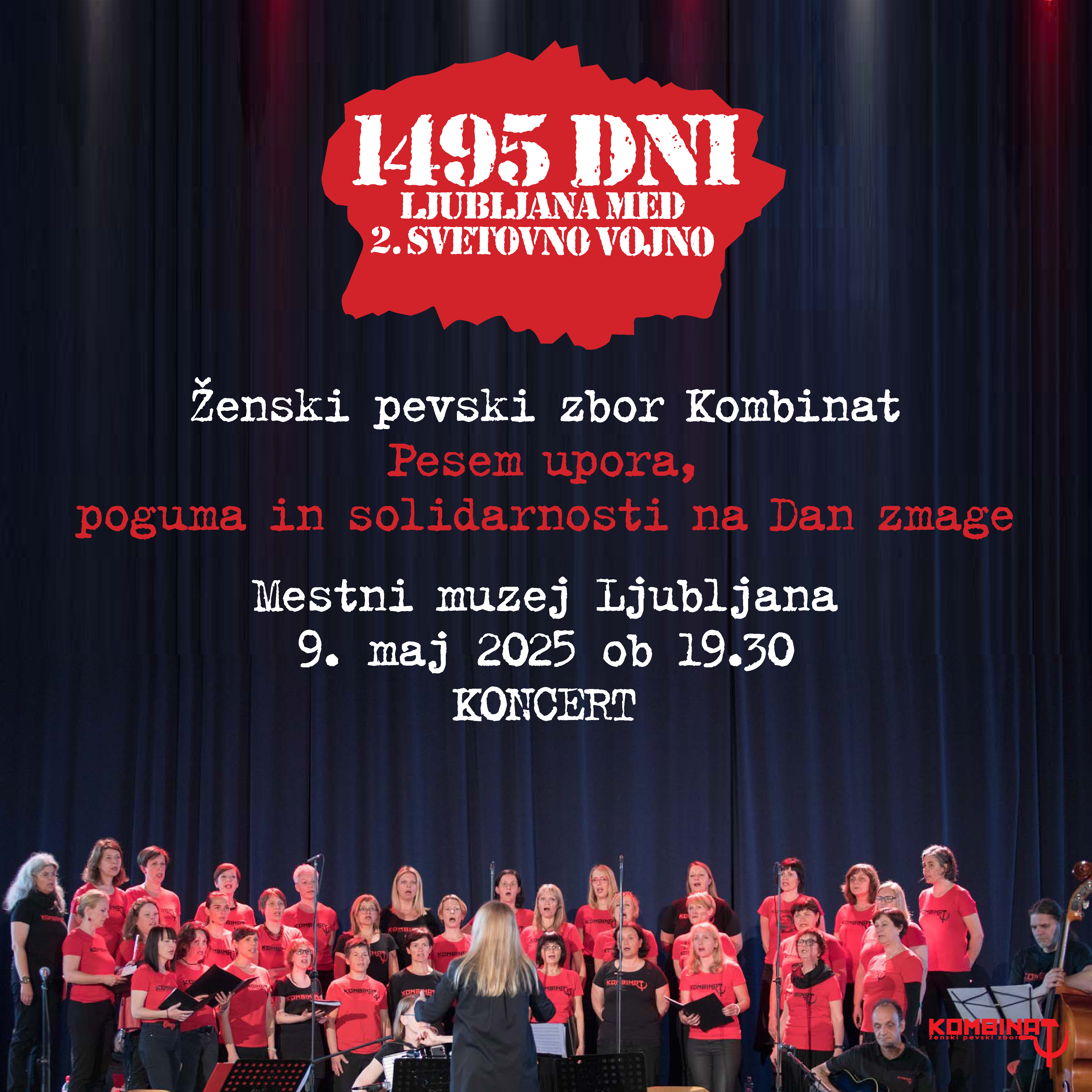 9. maja, prav na 80. obletnico konca 2. svetovne vojne v Ljubljani, vas vabimo na poseben glasbeni večer z Ženskim pevskim zborom Kombinat. Zbor, ki prepeva pesmi upora z vsega sveta, bo z mogočnimi glasovi napolnil atrij Mestnega muzeja. Vstopnice so že na voljo.