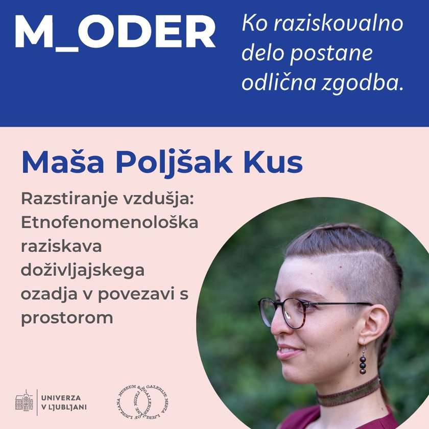 Maša Poljšak Kus bo na M_oder predavanju predstavila svoj magistrski projekt, ki ga je vodilo vprašanje kaj pravzaprav označuje beseda vzdušje, kako ga čutimo in v kakšnih okoliščinah.
