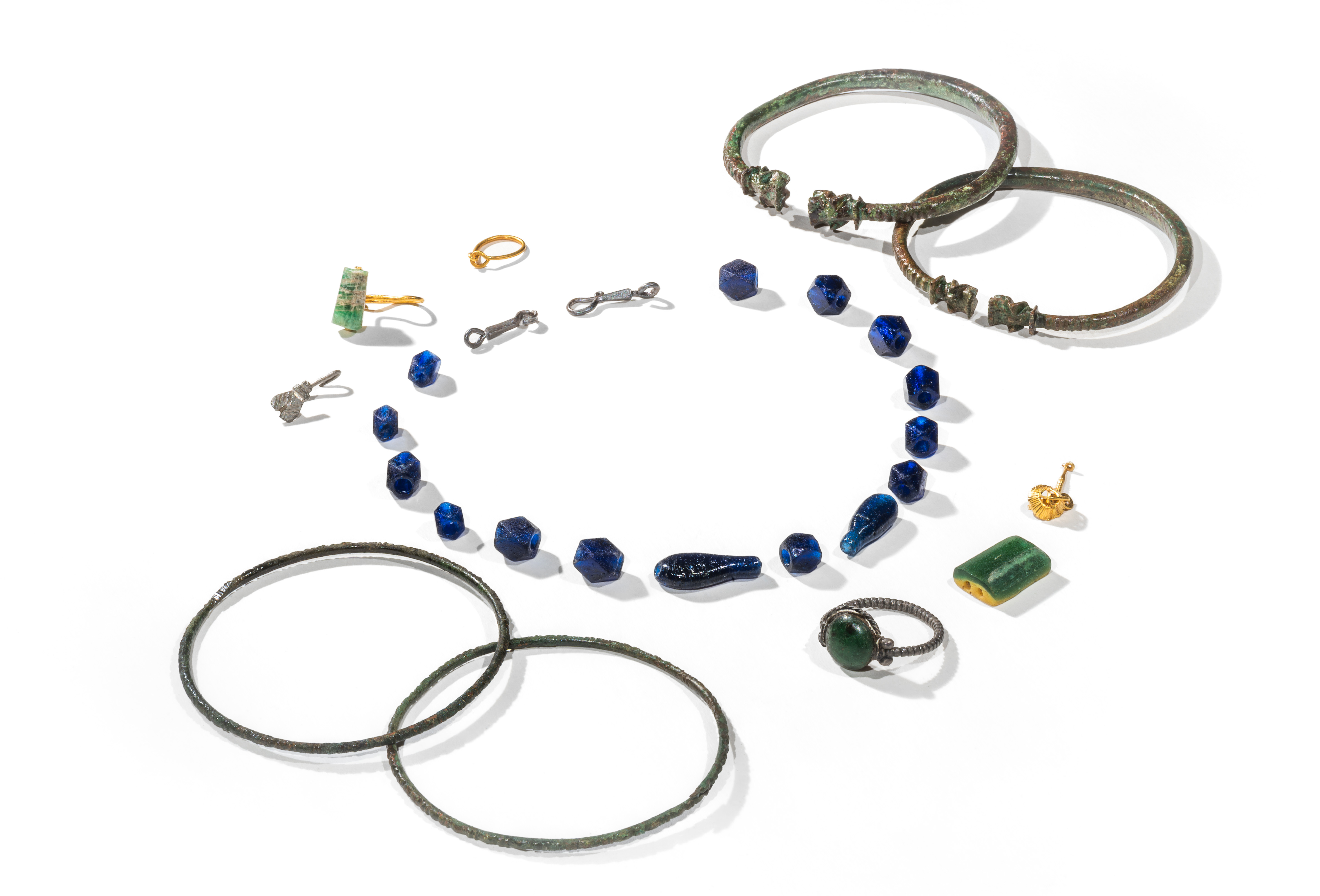 Arheološka izkopavanja, izvedena pred gradnjo večnamenskega kompleksa Emonika, ki so potekala spomladi in poleti 2024, so razkrila dele severnega grobišča Emone ter številne pomembne najdbe, ki pričajo o vsakdanjem življenju in verovanjih Rimljanov ter njihovi naklonjenosti do raznolikega okrasja. Poleg keramičnih in steklenih predmetov ter oljenk z raznolikimi motivi smo našli tudi uhane. Enega, narejenega iz zlate žice, je krasil vodoravno postavljen zelen kamen, morda smaragd, drugi, srebrn, pa po obliki ponazarja muho ali škržata. Med najbolj osupljivimi najdbami je izjemen komplet nakita iz 4. stoletja, ki vključuje štiri bronaste zapestnice, dve preprosti in dve z zaključki v obliki kačjih glavic, srebrn prstan z vstavkom iz zelenega stekla ter ogrlico iz petnajstih temnomodrih steklenih jagod s srebrnima zankama za zapenjanje. Vsak kos pripoveduje svojo zgodbo o mojstrskem rokodelstvu in osebnih slogih tistega časa.