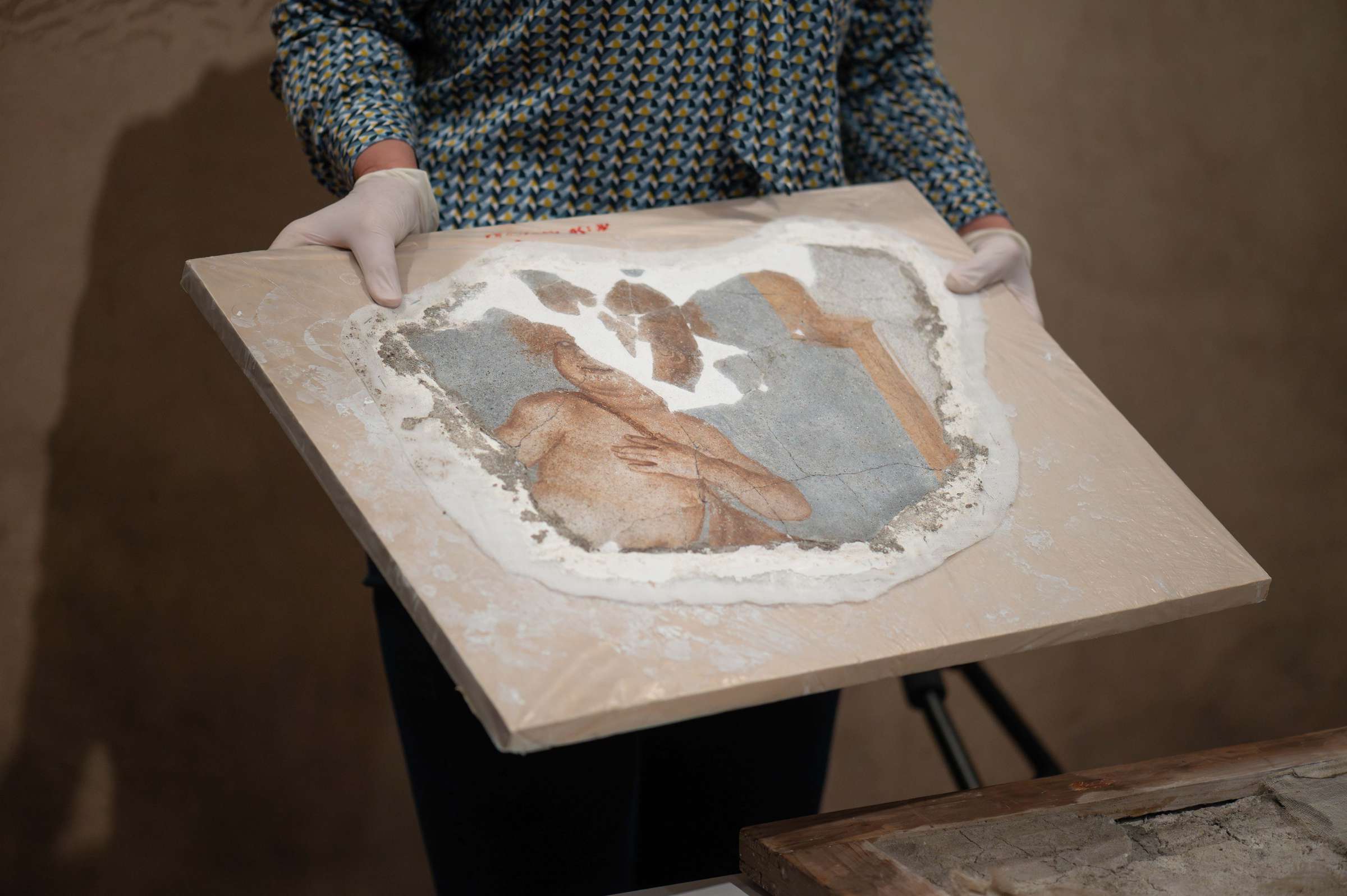 Med 6. 5. in 8. 5.: odstranjevanje mavca s hrbta poslikave