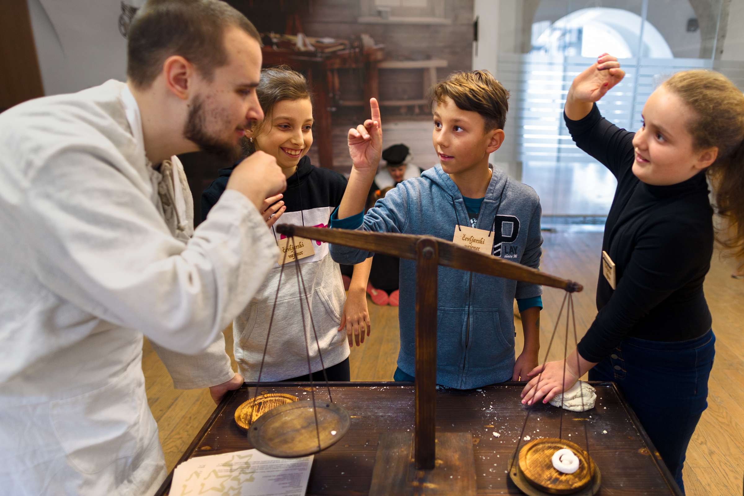 Dragi pustolovci, si upate prespati v muzeju, ko se pričnejo prebujati nočne skrivnosti? Skočite z nami v časovni stroj in šviiiic — že smo v srednjem veku! Tam nas čakajo razigrani duhovi, ki komaj čakajo, da nas popeljejo v daljno preteklost.