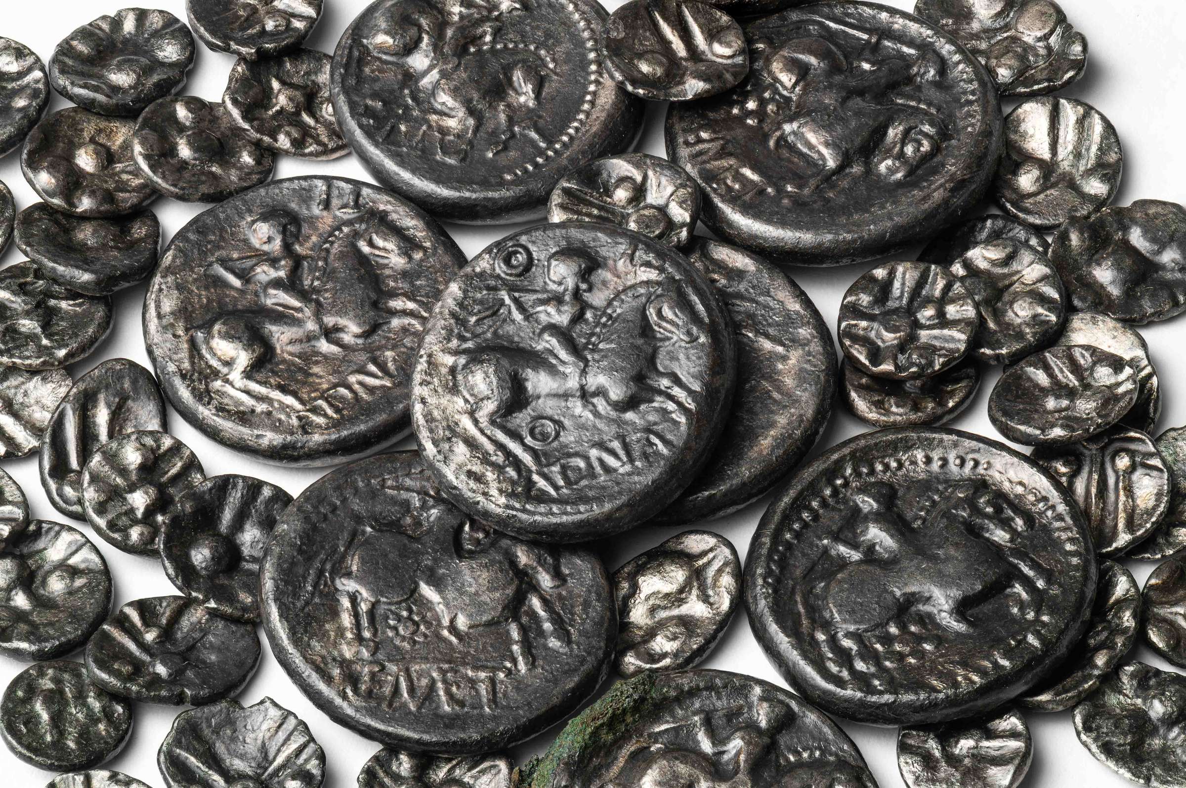 Ob prazgodovinski in pozneje rimski cesti so arheologi odkrili grob odraslega moškega. Ob pokojniku so ležali železen nož, sponka za oblačila in skupino 61 srebrnikov (9 velikih in 51 malih keltskih srebrnikov ter denarij cesarja Avgusta).
