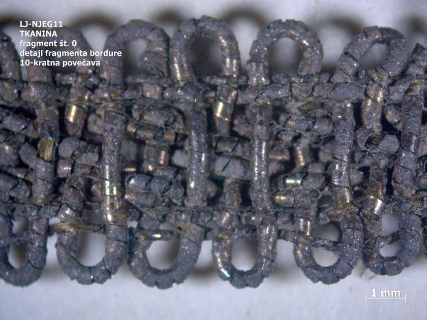 Glede na ostanke ohranjenega tekstila lahko sklepamo, da je bila obleka svilena, nanjo pa je bil všit kovinski preplet. Ta je bil izdelan iz tankih niti, ovitih v pozlačeno srebrno pločevino. Kot zanimivost naj omenimo, da je bila svila v tistem času dražja od zlata.