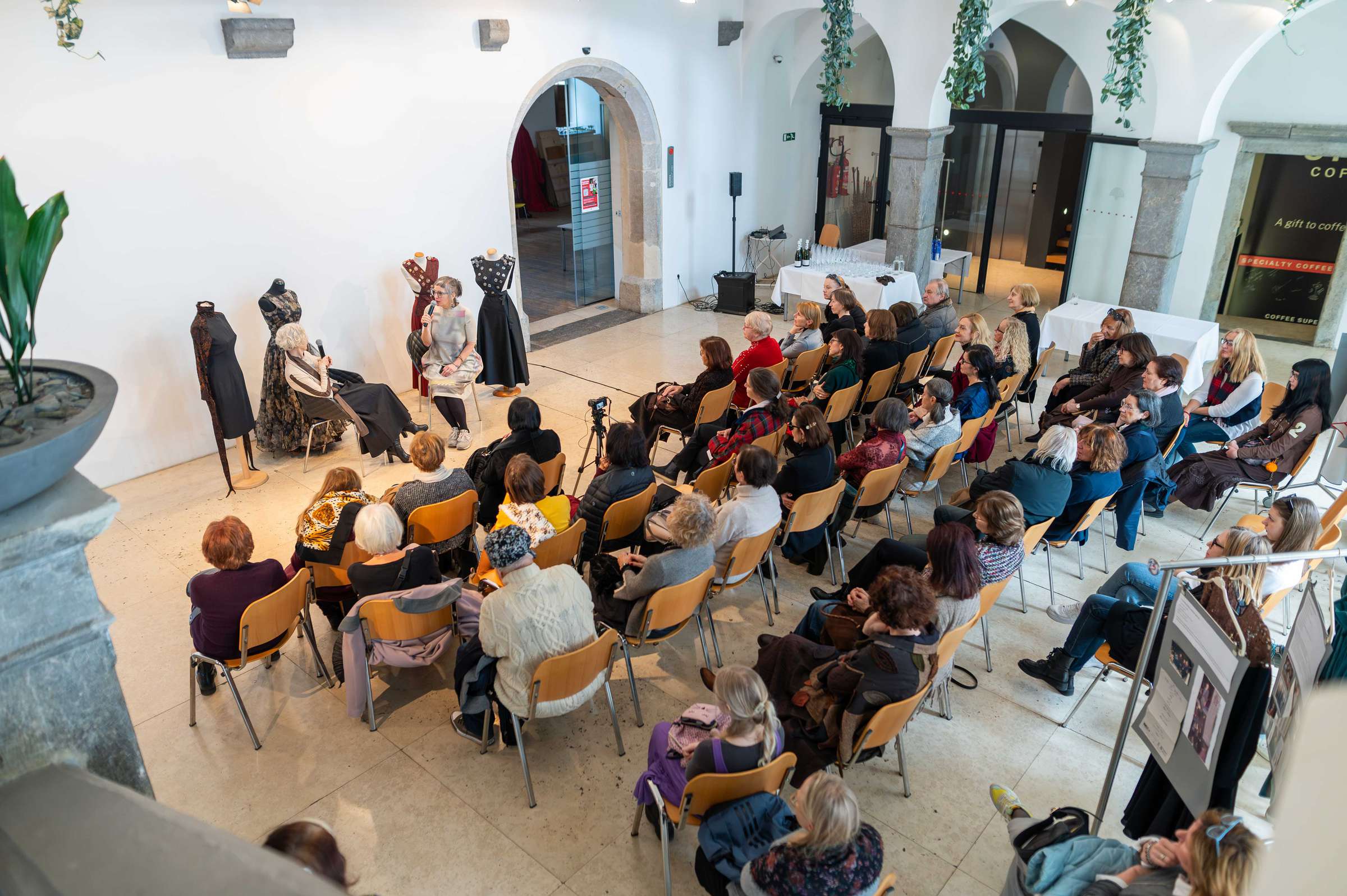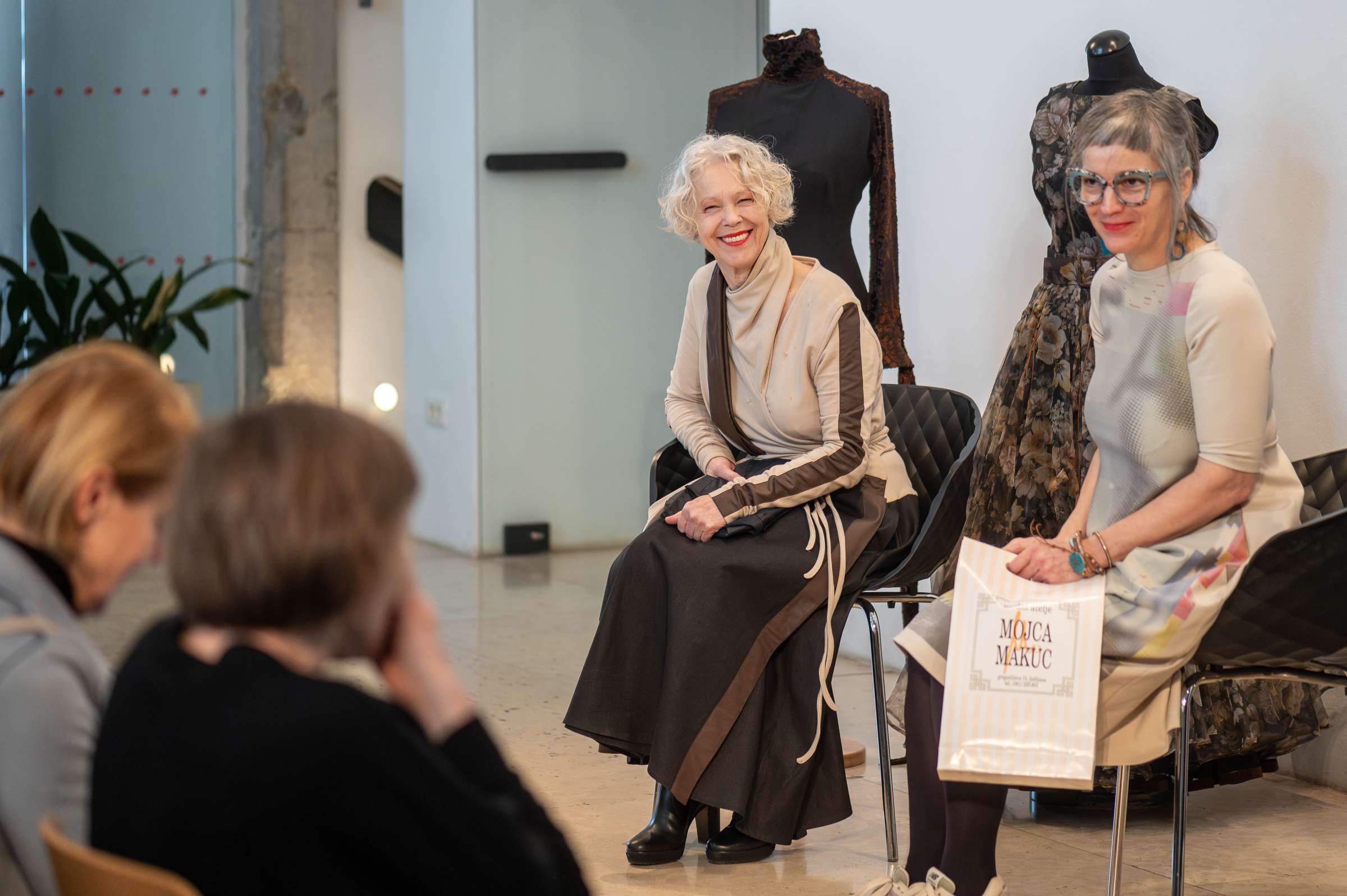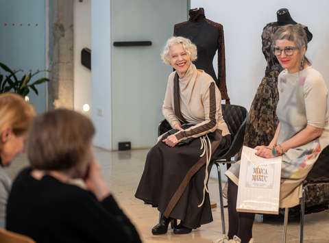 Dogodek je posebej zaznamoval tudi pogovor Odprte glave, v katerem se je z Mojco Makuc pogovarjala Tanja Devetak, izredna profesorica za področje oblikovanja oblačil in tekstilij. Zanimiv pogovor o ustvarjalni poti ikonične modne oblikovalke si lahko ogledate na tej povezavi.