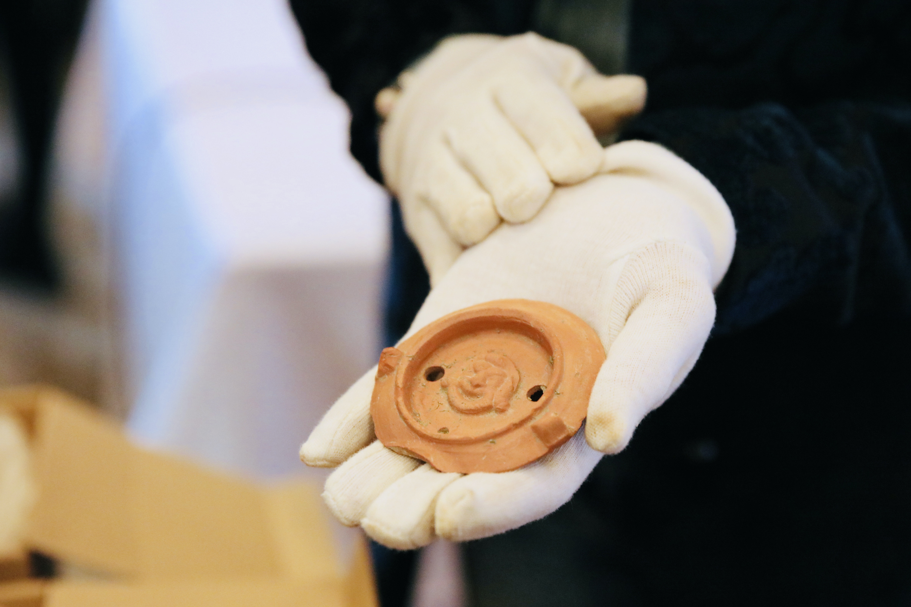 Rimska svetilka – oljenka, okrašena s podobo gledališke maske, verjetno sodi v 2. stoletje. Odkrita je bila v jami na območju ceste A, ob Igriški ulici. Oljenke so bile v času Rimljanov ekonomični in hkrati estetsko oblikovani vsakdanji predmeti. S svojimi motivi so bile tudi del imperialne propagande. Motiv gledališke maske na predstavljenem odlomku oljenke pa Emono in njeno zanimanje za gledališče simbolno povezuje z današnjim gledališčem.